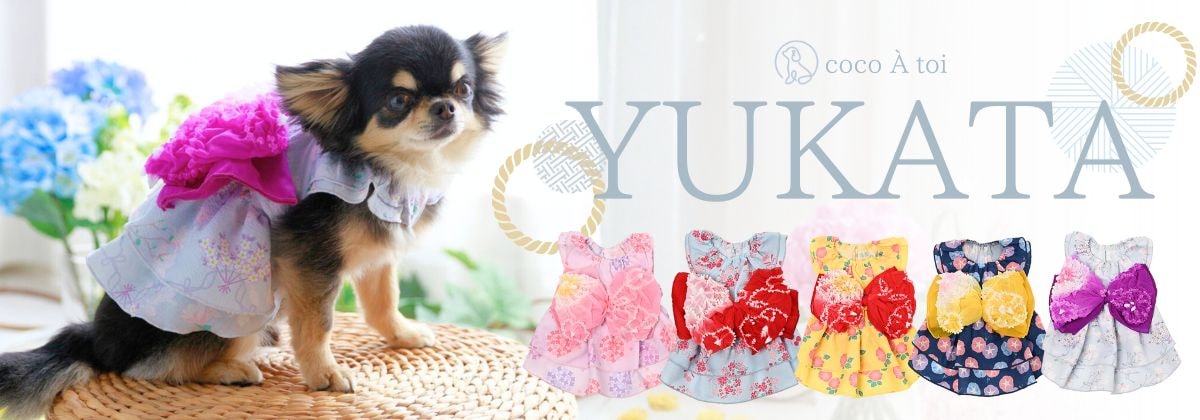 浴衣ワンピースなど季節感を楽しめる犬服も人気です。