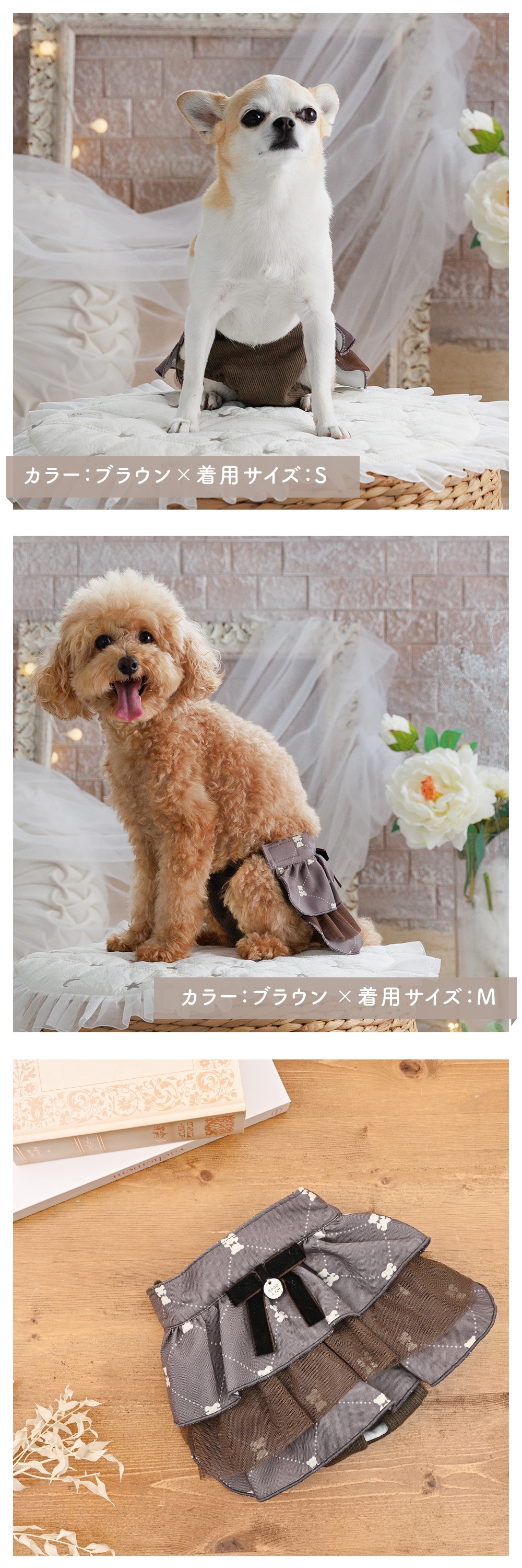 お洋服はチワワ、トイプードル、シーズーなどに対応するS・M・Lの3サイズ展開。