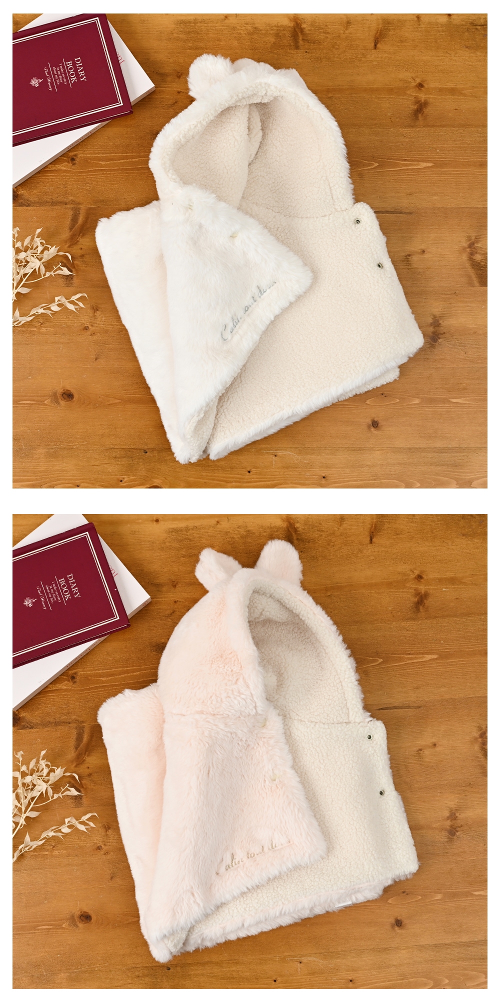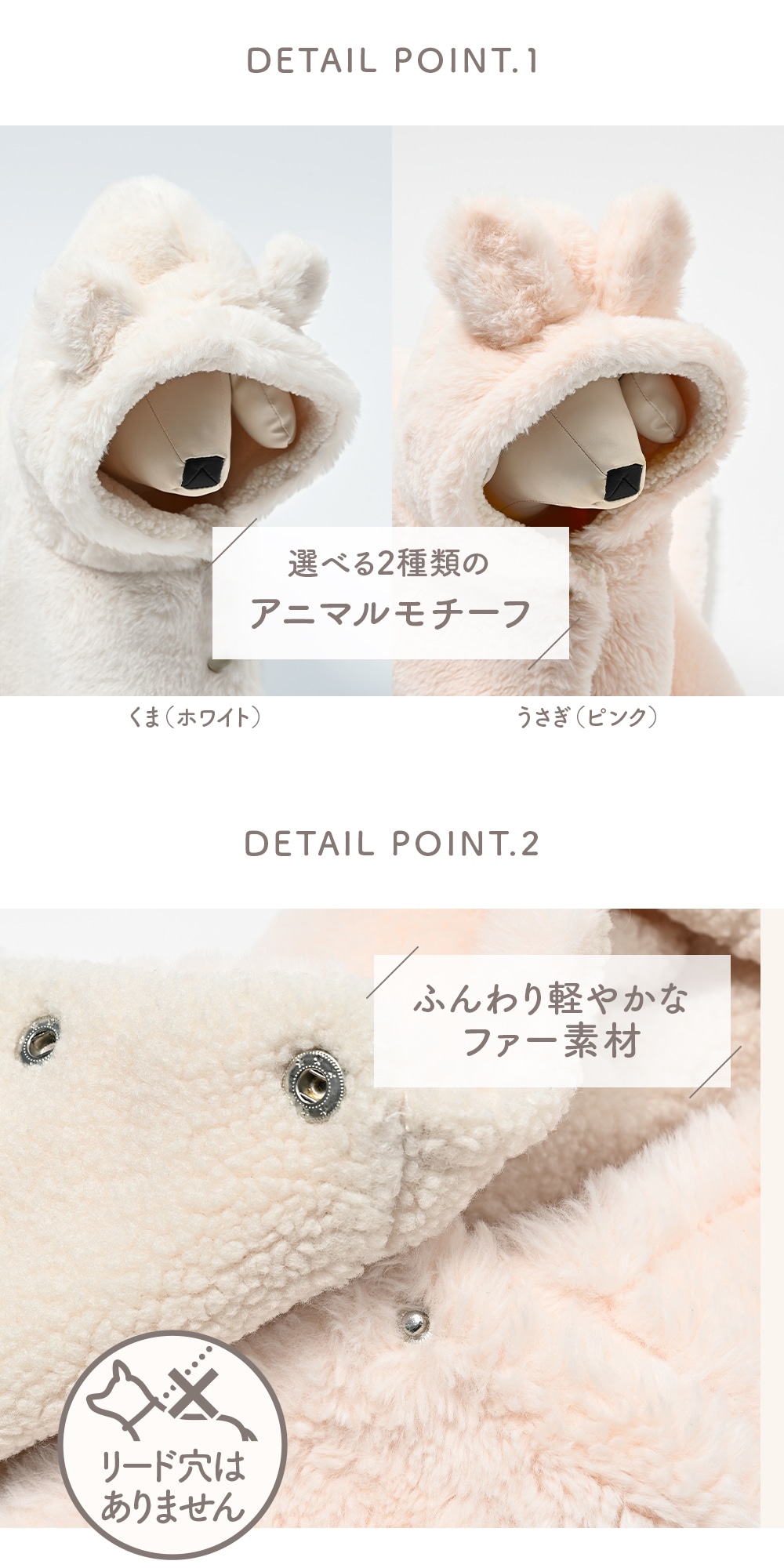 ピンクはうさ耳、ホワイトはくま耳。どちらも可愛らしく季節感を楽しめますふんわり軽やかなファー素材