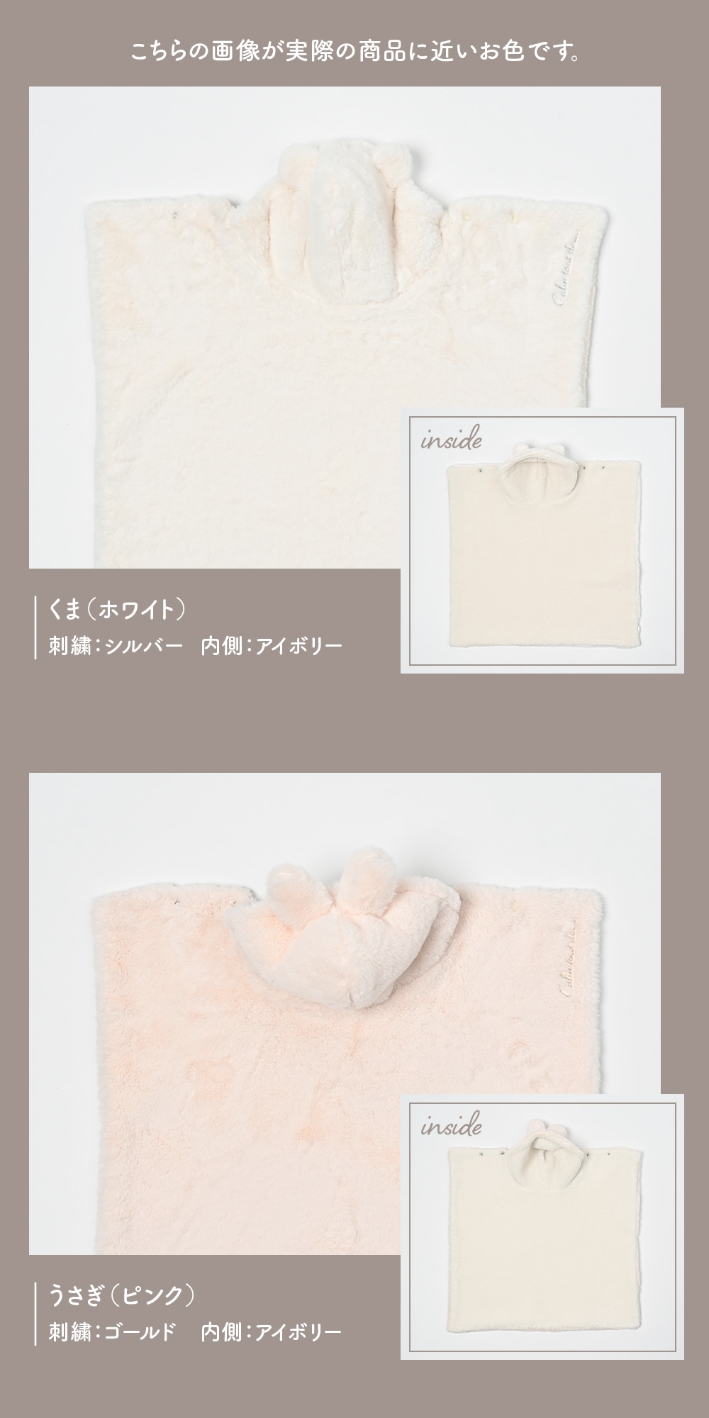| カラー | ホワイト(くま)、ピンク(うさぎ) |