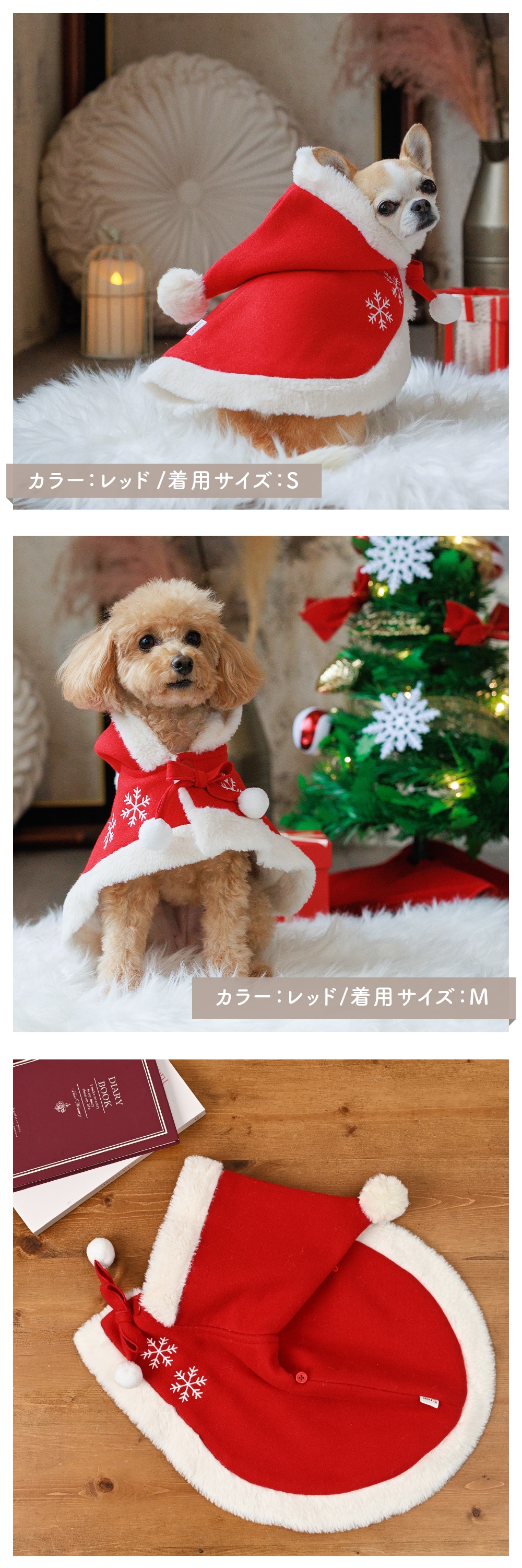 お洋服はチワワ、トイプードル、シーズーなどに対応するS・M・Lの3サイズ展開。